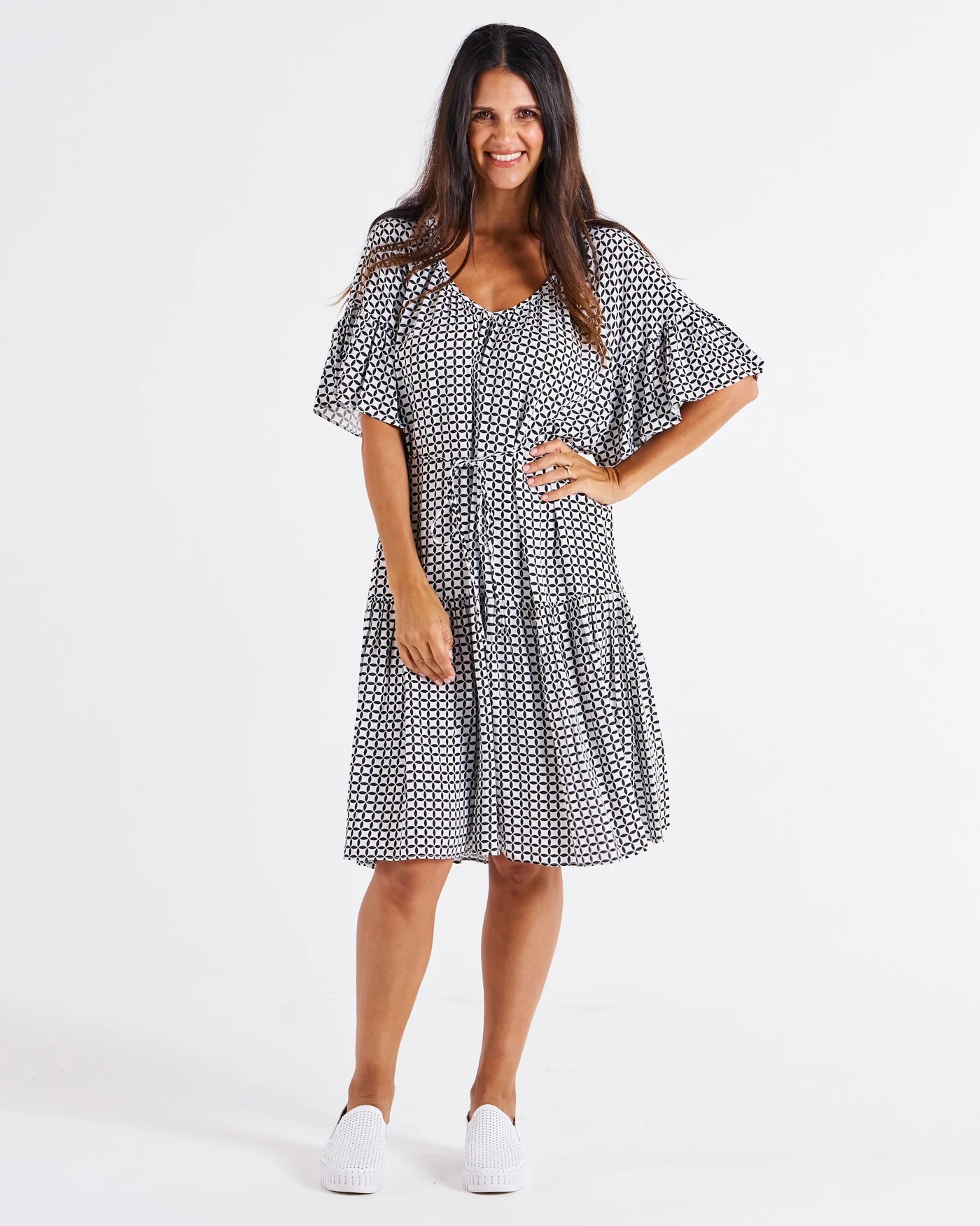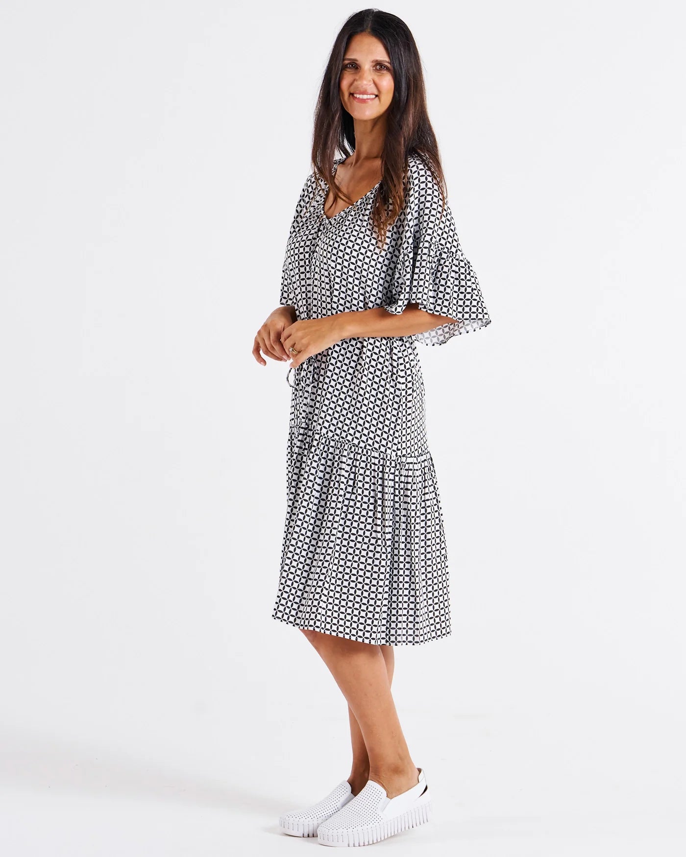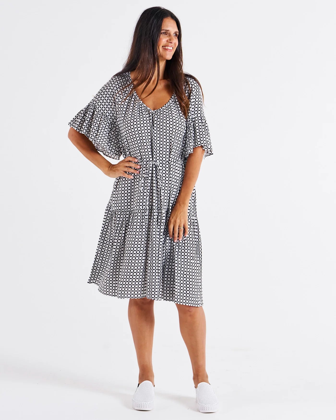 The Bella Dress brings together comfort and style with its soft viscose feel and V-neckline with gathered details. The flutter sleeves and hem create an effortlessly wearable, springtime look that?s both basic and elevated.