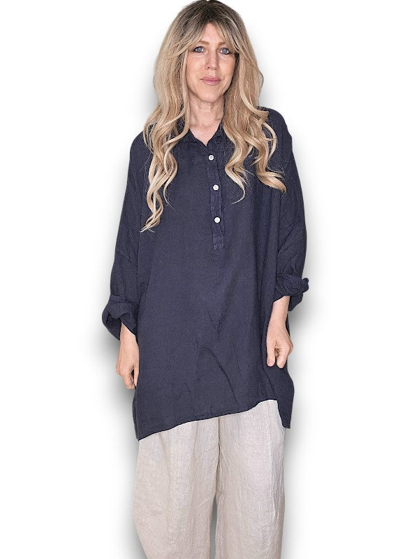 Free Sized, (slightly bigger Free-Size) that suits M/XL perfectly for a flowing over-sized look. Beautiful soft linen shirt and perfectly paired with many of our soft linen pants for an easy breezy “coastal look”