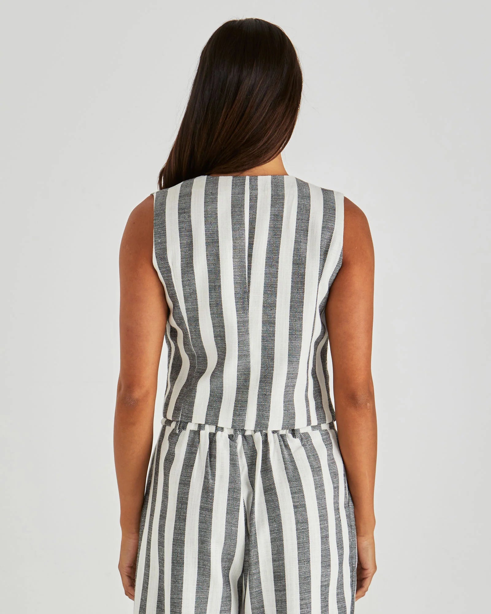 With a tailored shape and contrast buttons, the Nevada Vest brings vintage-inspired cool to your summer looks. Pair it with the matching skirt or jeans for a laid-back, elevated vibe. Fully lined and easy to wear, it's a chic layering piece.