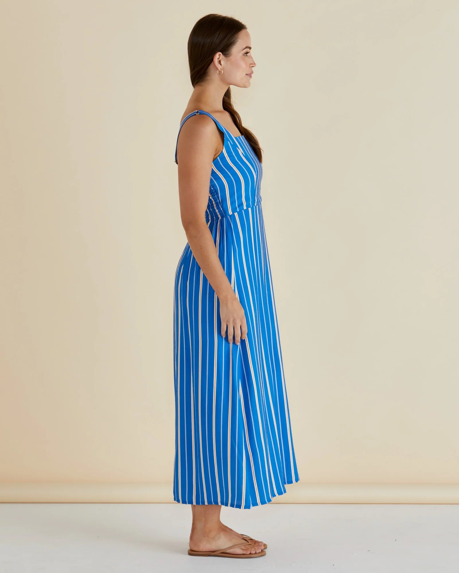 The Tegan Midi Dress offers a flattering fitted silhouette with a square neckline and shirred back panel for comfort. Crafted from a soft viscose blend, it features side splits and a midi length for elevated style. A classic, effortless dress designed for transeasonal elegance.